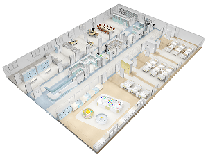 洗嬰室需要結(jié)合新生兒護(hù)理工作的模式和環(huán)境,進(jìn)行整體設(shè)計(jì),注重安全、預(yù)防感染,營造符合嬰幼兒特征的活潑可愛、安全溫馨的場景氛圍。